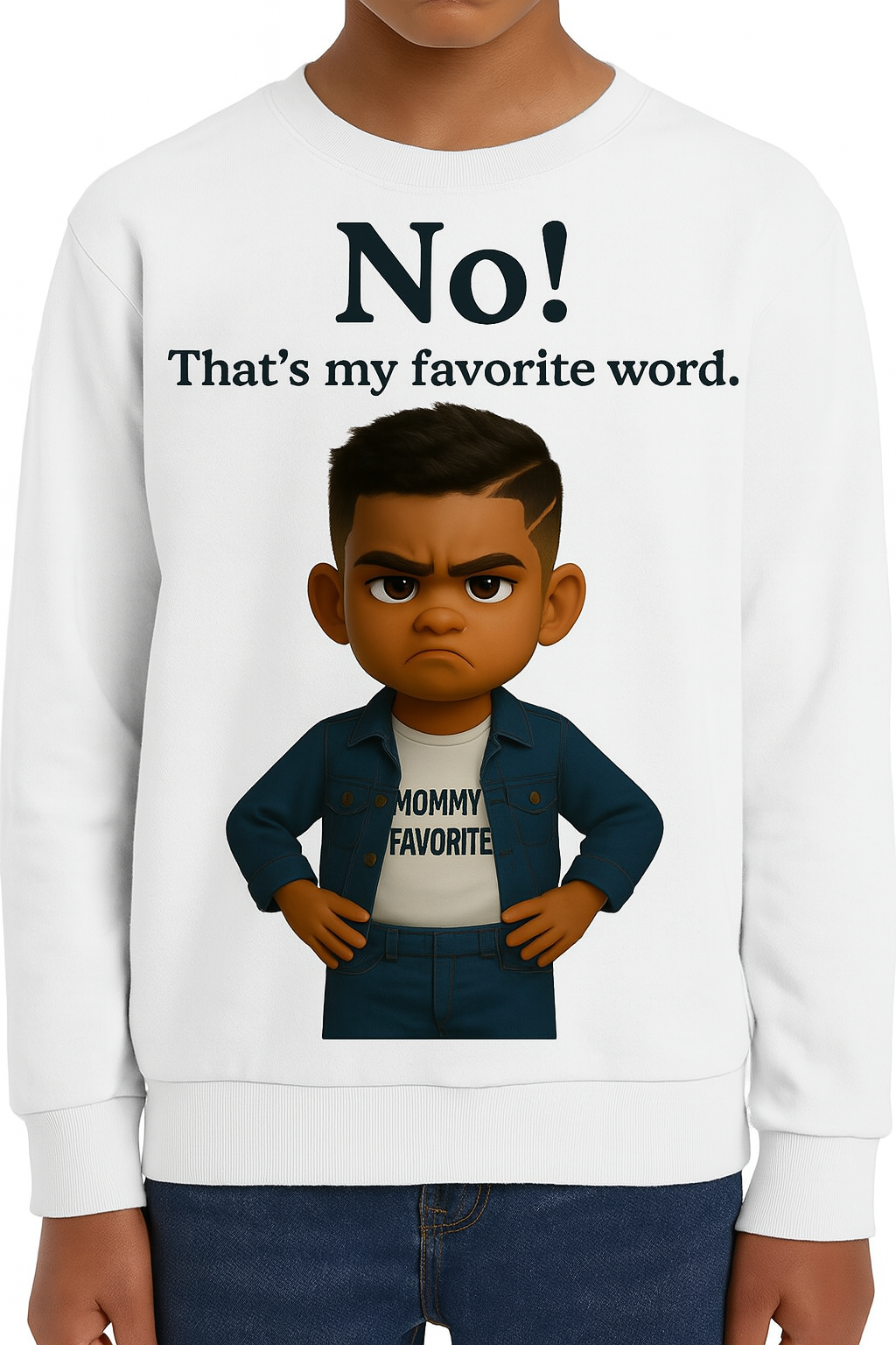 Each sweatshirt in this collection features a pint-sized powerhouse with a whole lotta personality. Whether it’s side-eye in the kitchen, a scowl about sibling status, or a bubble-blowing diva dodging chores, these babies speak volumes without saying a word.
